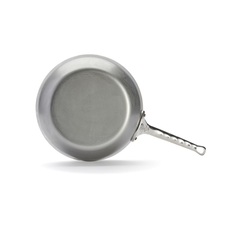 La poignée rivetée en fonte d'acier inoxydable, courbée à la française, assure une prise en main facile et ergonomique.