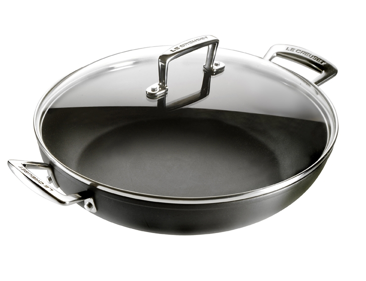La sauteuse provençale du Creuset (diamètre 26 cm) est livrée avec son couvercle en verre.
