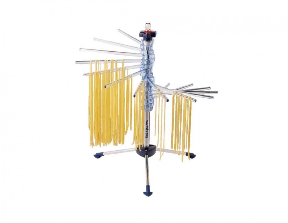 Il permet d'étendre plus de 2 kg de pâtes fraîches et est doté de 16 bras en polycarbonate d'une longueur de 20 cm chacun. L'appareil compact et pratique, se déplie en éventail et se replie facilement (sans démontage).