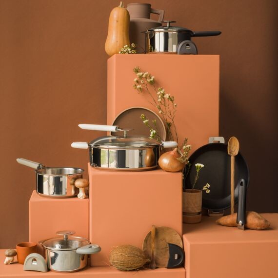 La collection Mutine amovible vous permet de passer de la cuisson au service grâce à sa fonction « Cook & Serve » qui transforme chaque ustensile en élégant plat de serviceMultifonction, passez d’une casserole à un faitout, d’une poêle à un plat à four et d’une sauteuse en un plat de service d’un simple geste. La poignée amovible vous offrira également un rangement compact : chaque article s’emboite les uns dans les autres pour un gain de place optimal dans votre cuisine.