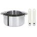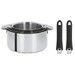 Elle est livrée sans poignée ni anse. Toutes les poignées et anses Cristel sont compatibles avec cette poêle. Il existe une vingtaine de poignées et anses Cristel de différents modèles et différentes couleurs.