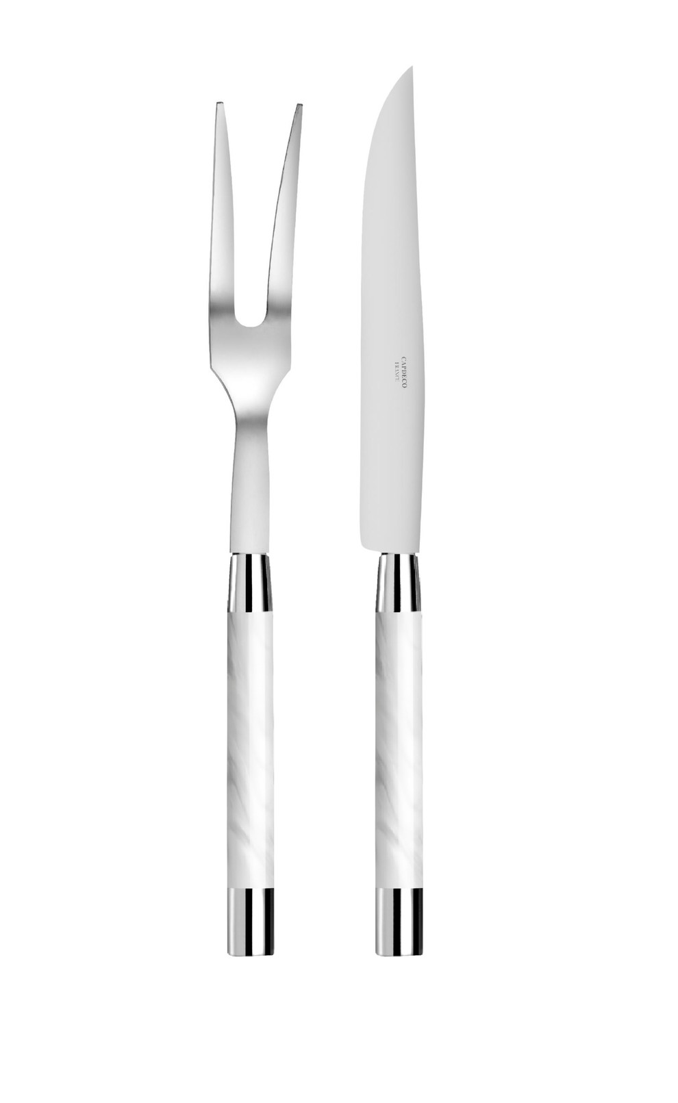 Avec leur manche en résine acrylique, le haut de couvert découpé en inox 18/10 et leur virolle en laiton décolletée, chromée, les couverts Conty vous apporteront une subtile élégance à votre table!