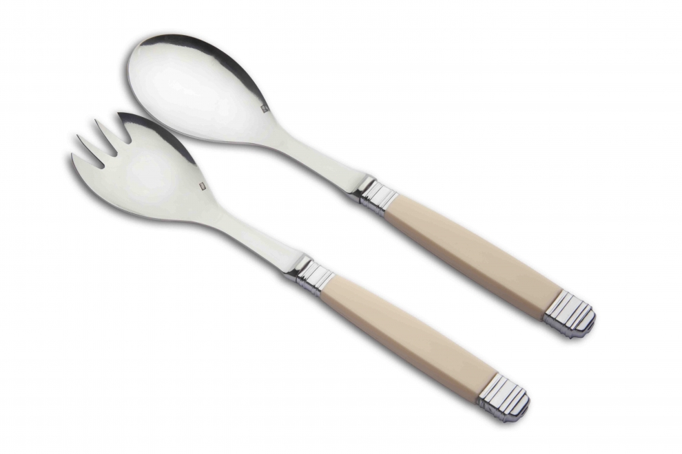 De style classique, le service à salade Empire ivoire est composé d'une cuillère et d'une fourchette de grande taille pour mélanger la salade avec la sauce, puis la prendre facilement dans le saladier pour la servir à l'assiette.