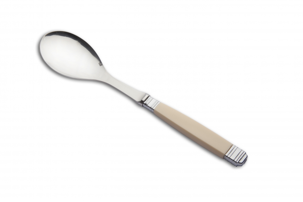 L'acier inoxydable 10/18 sur les haut, lame et virole, associé à la résine du manche assurent une longévité remarquable à l'élégance de cette collection de couverts.