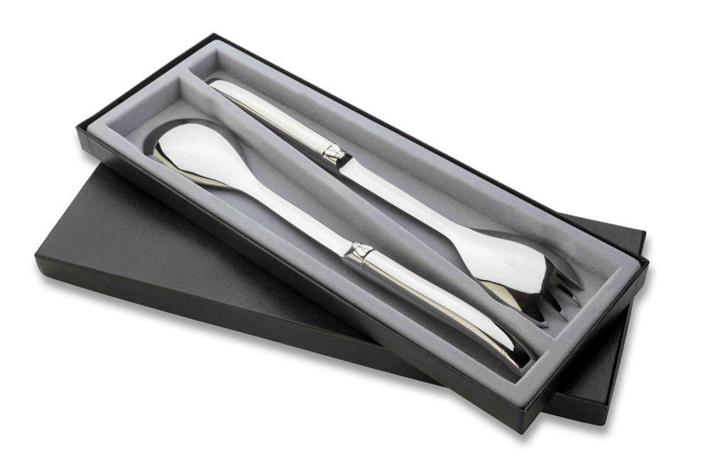 Raffiné et épuré, le service à salade Laguiole de Goyon Chazeau est la solution idéale pour servir la salade à table en toute élégance.