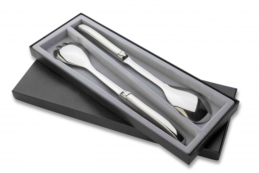 Avec sa ligne fine et épurée, votre set de couverts de service à salade tout inox est orné de la célèbre mouche Laguiole.