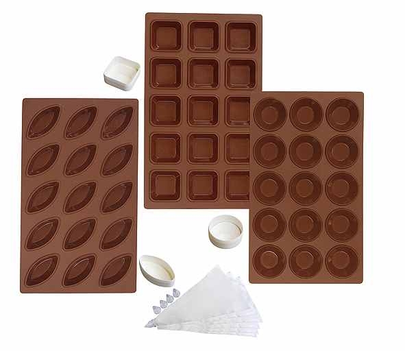 Idéal pour la réalisation de vos mini tartelettes, mini financiers et mini fondants au chocolat. Le set de 3 tapis de cuissons avec ses découpoirs/emporte-pièces ronds, carrés et en forme de financiers, vous permet de réaliser vos pâtisseries facilement en un temps record.