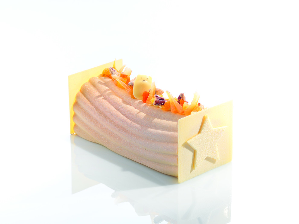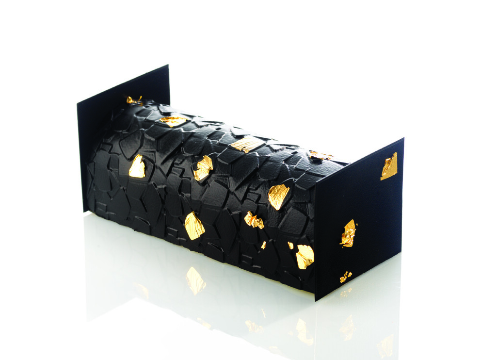 Après la mise en froid de votre préparation, vous obtenez un effet de la matière qui ajoute une note personnelle et originale aux créations lors du démoulage de l'entremets ou de la bûche.