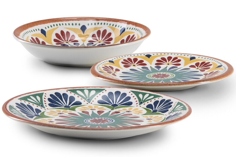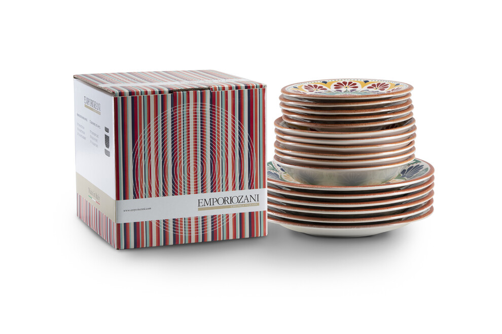 Des sets de 18 assiettes en céramique Italienne, composé de: