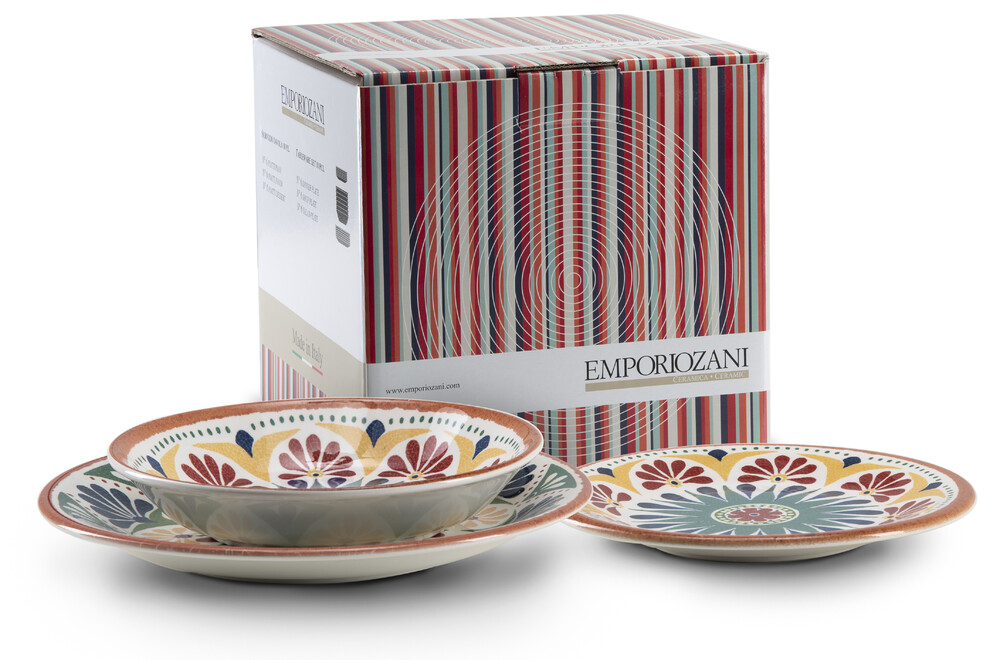 Déclinée en huit décorations et complémentaire de par ses formes et ses couleurs aux collections Touch-MeL de même nom, la Céramique Italienne d’Emporio Zani est proposée en kit complet de table pour 6 couverts, composés d’une assiette plate, d’une assiette creuse et d’une assiette à dessert.