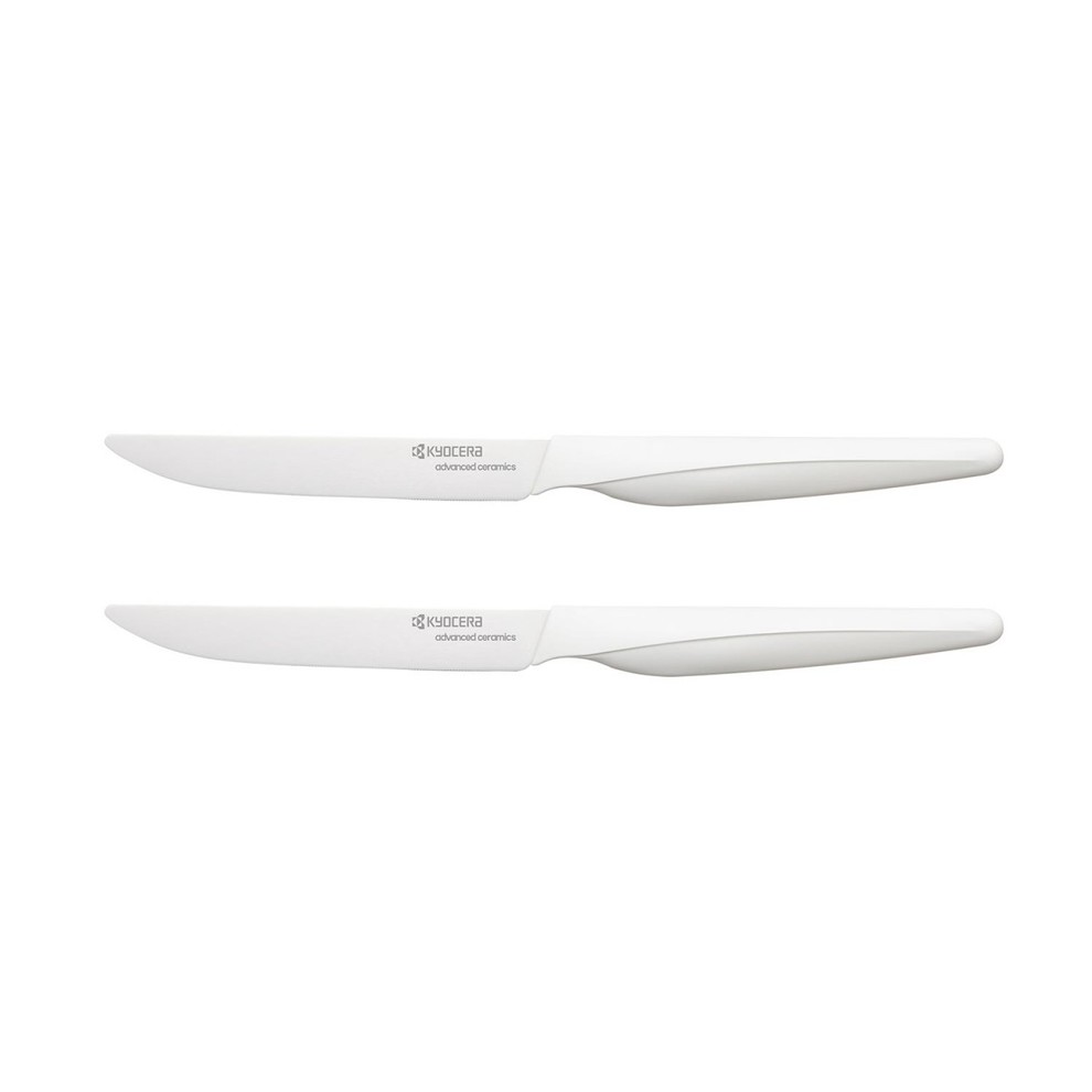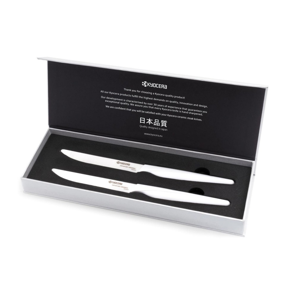 Deux couteaux à steak en céramique de Kyocera, vendu en coffret cadeau.