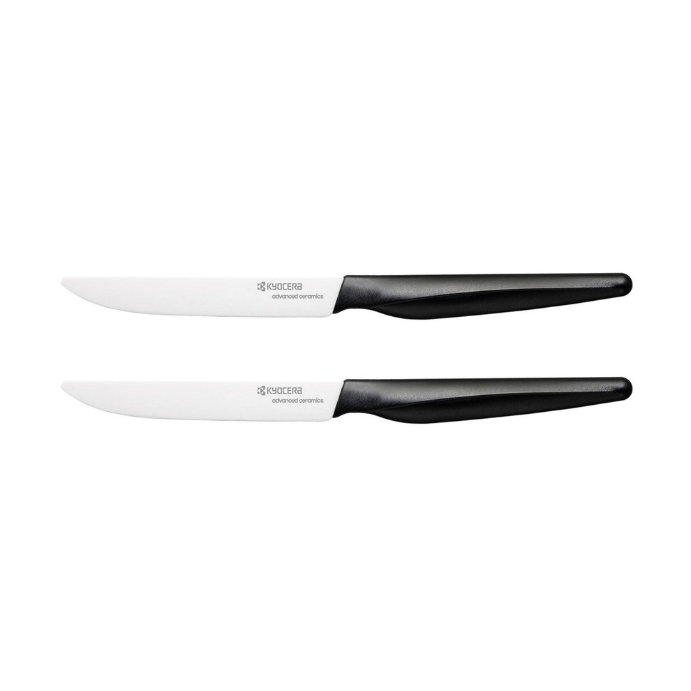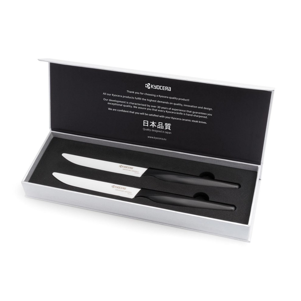 Deux couteaux à steak en céramique de Kyocera, vendu en coffret cadeau.