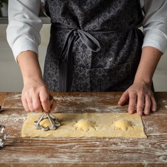 Cet emporte pièce à raviolis ou biscuits, futé et pratique, est destiné aux amoureux de pâtes fraîches maison. Cet ustensile de cuisine italienne ingénieux vous permettra de confectionner simplement et rapidement d'excellents ravioli farcis maison ou des biscuits. Il saura séduire les cuisiniers attachés aux traditions culinaires de la péninsule italique et à la cuisine saine.