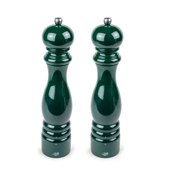 Ces grands moulins à poivre et sel sont un excellent cadeau de Noel . Outre le design de ces grands moulins vert, le moulin peugeot X BGE est très performants et résistants. Le mécanisme spécial en acier sel sec est garanti à vie, sans limitation de durée. Fabriquée en France, la collection de moulin reflète le savoir-faire Peugeot et le design caractéritique de Big Green Egg. Le petit bouton offre la possibilité de régler la taille du grain.