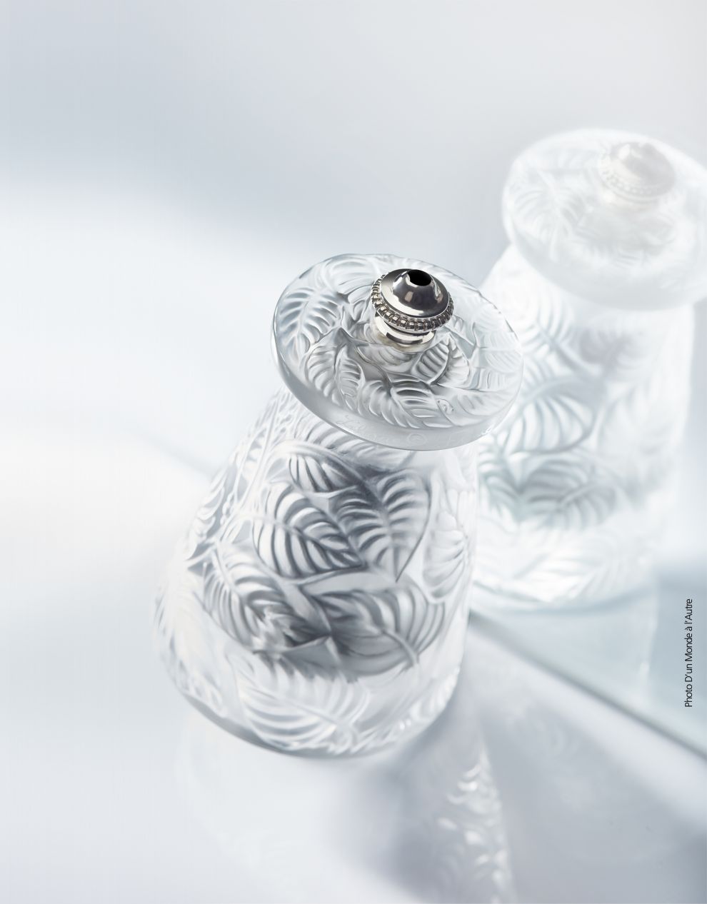 Rééditions du célèbre modèle de 1924, les moulins à poivre et à sel Lalique constituent de véritables œuvres d’art qui réunissent le savoir-faire de deux maisons de renom : Peugeot et la cristallerie Lalique.