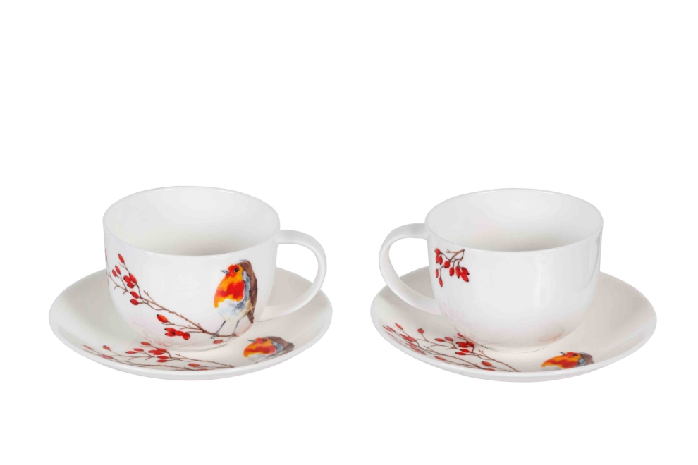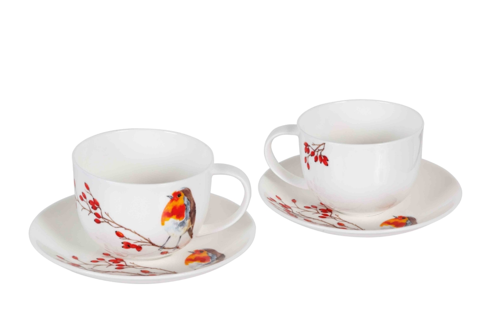 Set de 2 Tasses & soucoupes Petit Déjeuner Jumbo cup oiseaux "Robin "