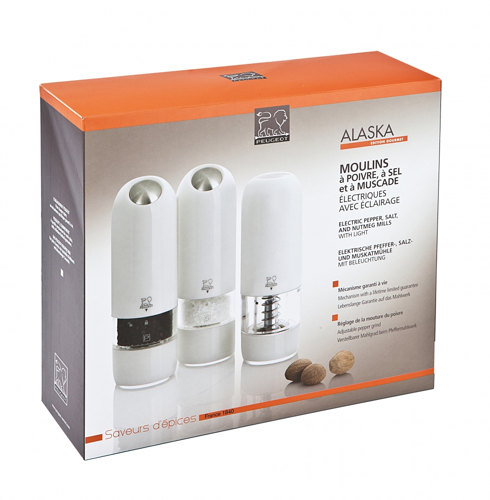 Tous les mécanismes Peugeot sont garantis à vie et les moulins électriques Alaska sont garantis 2 ans.