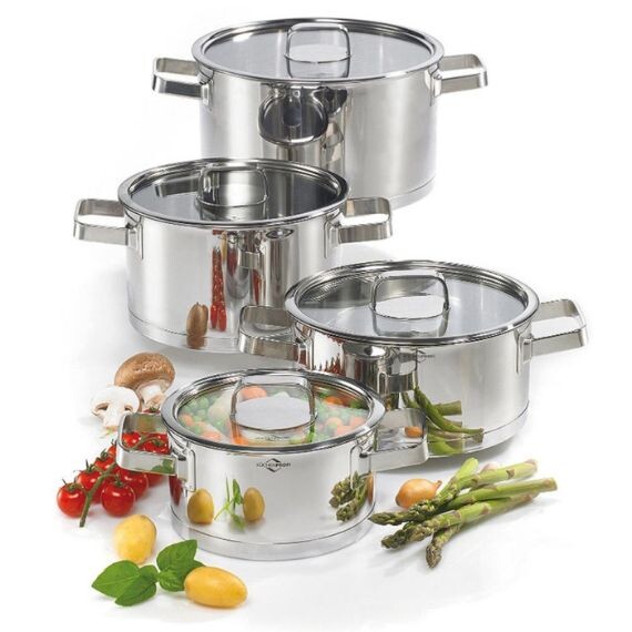 Le set de 4 cocottes en inox est parfait pour cuisiner pour vos amis ou votre famille. Le set est composé de trois marmites à viande et une marmite à rôtir. Avec 4 tailles différentes, réussissez tous vos plats préférés ! De plus, elles s'adaptent à tous les feux, y compris l'induction. Composé d'une base multicouche extra résistante, la cocotte Kuchenprofi répartit la chaleur uniformément pour un résultat parfait.