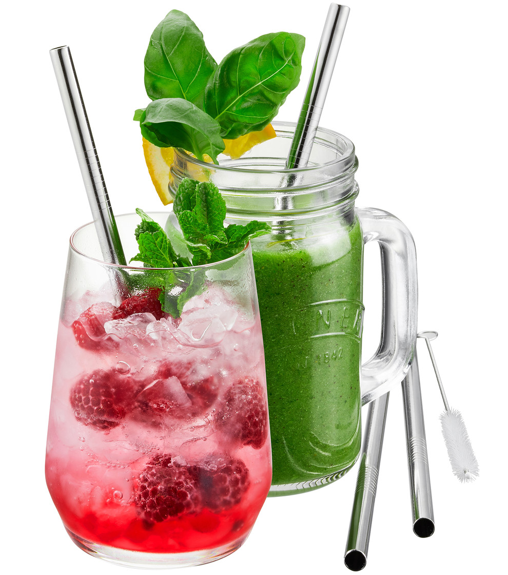 Set de 4 pailles en acier inoxydable 18 cm avec brosse FUTURE