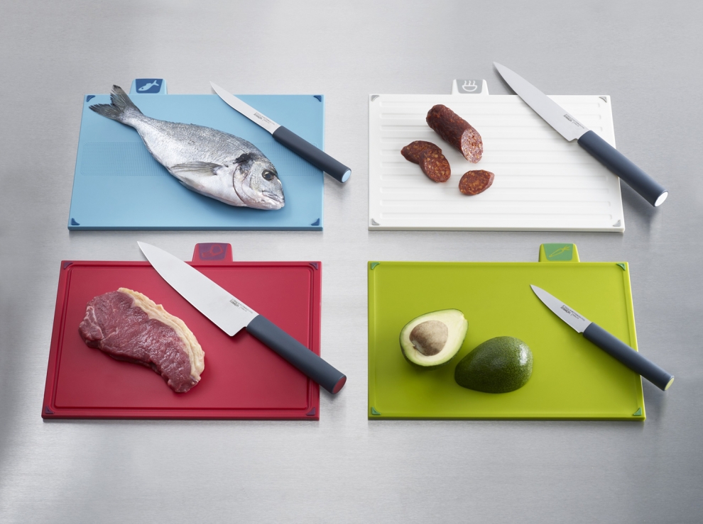 Set de 4 planches à découper argent grand modèle + 4 couteaux