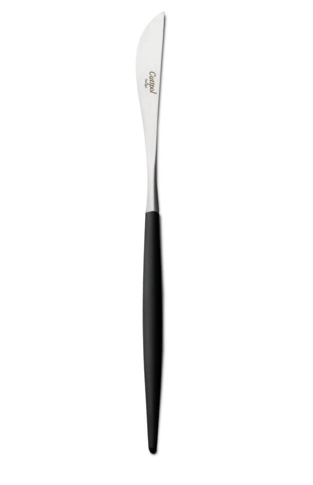 Magnifique couteau de table GOA noir de Cutipol, le manche conçu en résine ainsi que la lame en acier inoxydable 18/10 s'adapteront parfaitement à votre main et feront de ce couvert un allié de tous les jours.