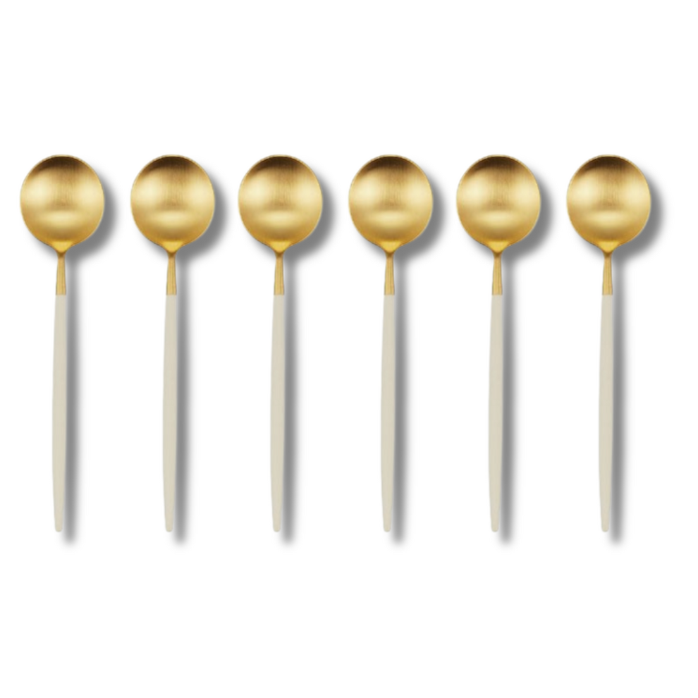 Set de 6 cuilleres a cafe/the Goa en acier inoxydable brosse Gold & manche blanc
