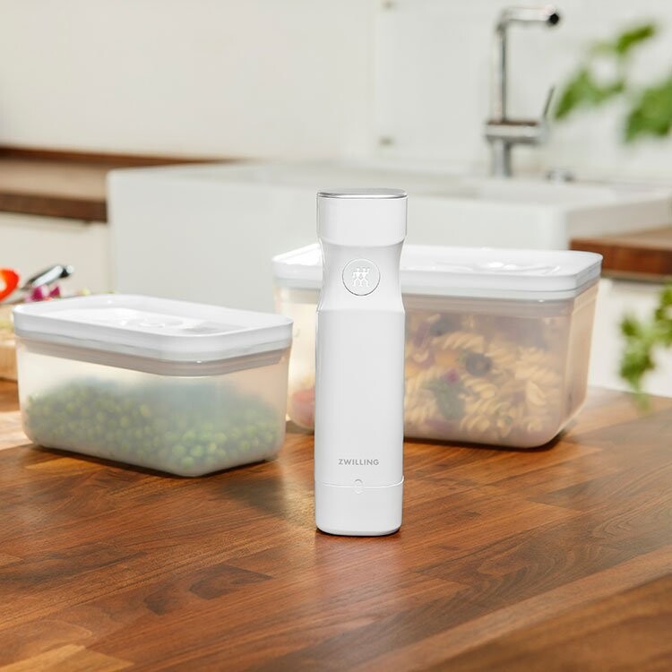 Avec cette Pompe Sous-vide FRESH & SAVE, Zwilling, propose un outil révolutionnaire: sur simple pression d'un bouton, cette pompe vous offre la FRAICHEUR GARANTIE.