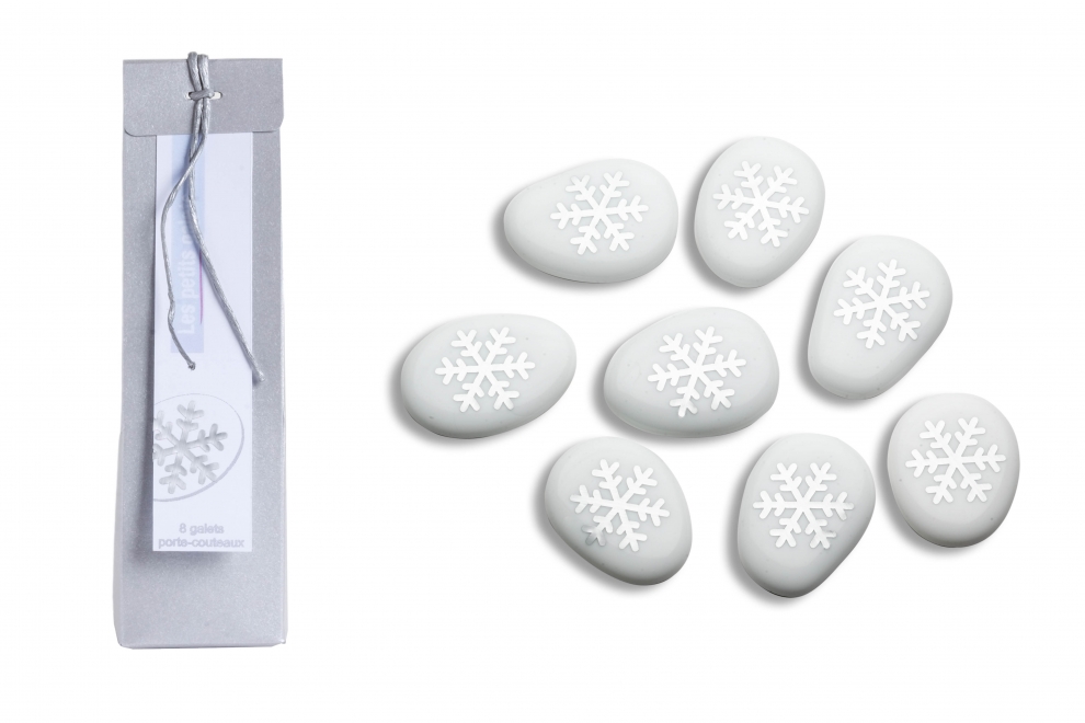 C’est ce que l'on vous propose à travers un set de 8 galets en porcelaine porte-couteaux sur le thème du macaron, célèbre pâtisserie française. Imaginés par des créateurs puis fabriqués à la main dans un atelier de la région nantaise, ces objets de créateur destinés à la décoration de la table conviendront parfaitement à tous vos évènements.
