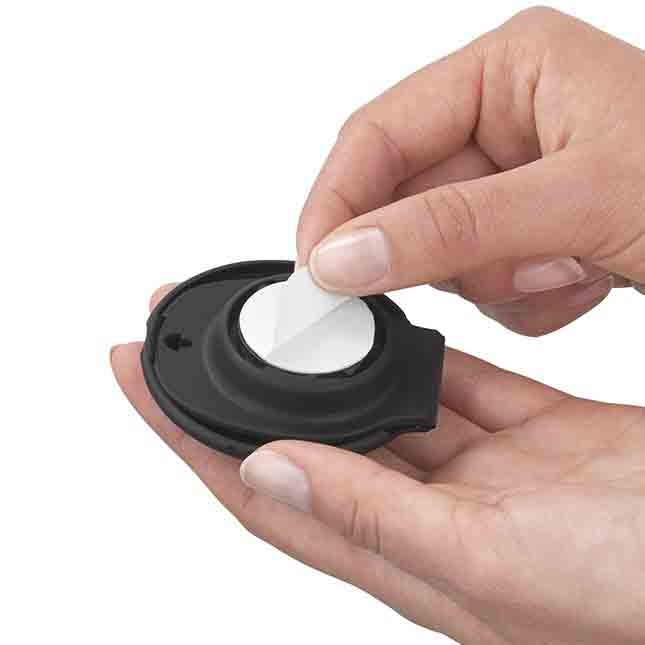 2) Enlever le film de protection sur le support et le fixer sur la face interne de votre poubelle