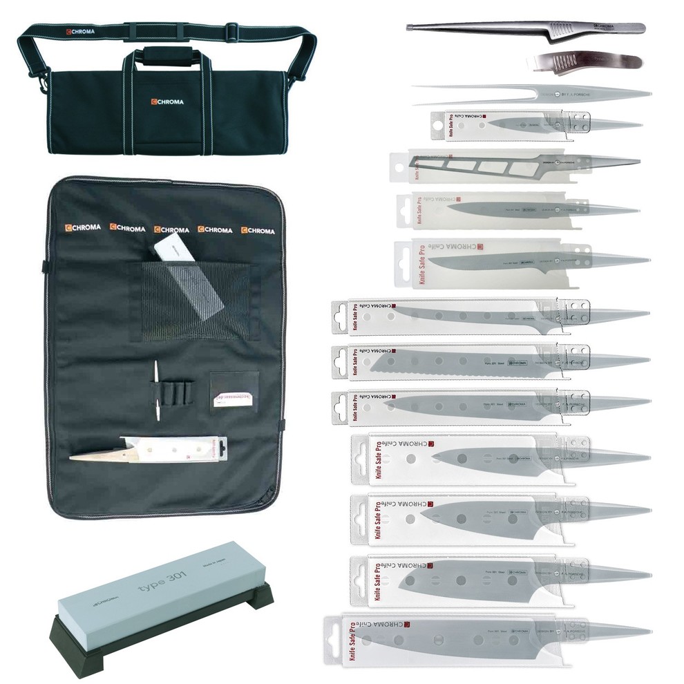 La mallette grand chef est composée de 27 pièces pour vous permettre tous types de travaux culinaires. Ainsi, vos couteaux type 301 Design by FA Porsche conservent le tranchant de leurs lames et vos ustensiles sont rangés en toute sécurité.