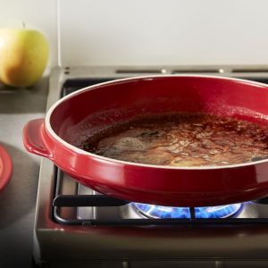 Préparer directement votre caramel directement sur le feu (le plat est compatible tout feu sauf induction). Pour la cuisson, conservez le même plat pour faire cuire votre préparation au four.