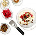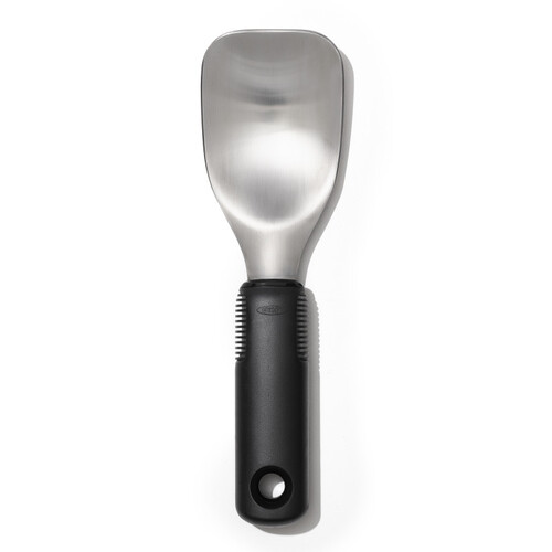 La cuillère, arrondie sur une partie, aide à récupérer la crème glacée en grande quantité d'un seul coup. Cette spécificité en fait la cuillère à glace idéale pour la sorbetière à la maison. La poignée douce en Santoprène est très ergonomique, les petits coussins d'air vont absorber la pression et éviter de forcer pendant son utilisation.