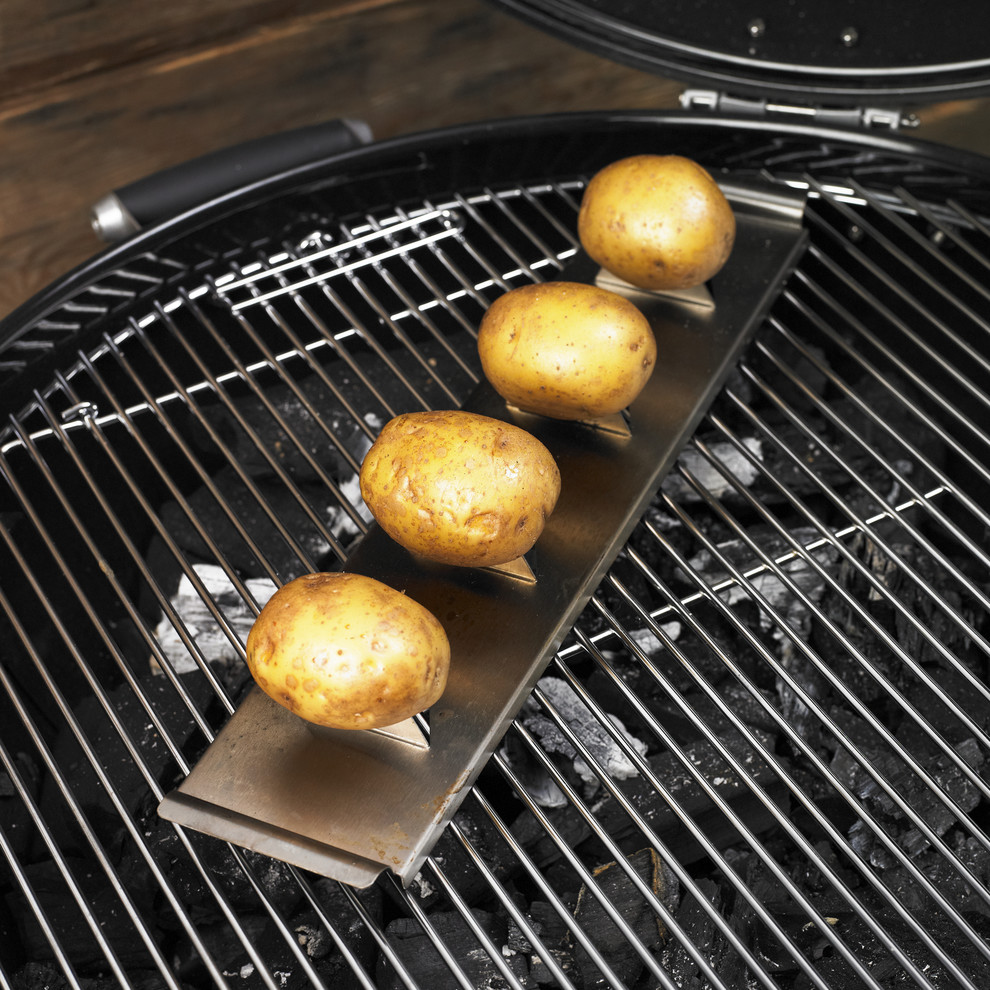Support pouvant contenir jusqu'à 4 pommes de terre. Cuisson uniforme, que ce soit à l'intérieur ou à l'extérieur du légume.