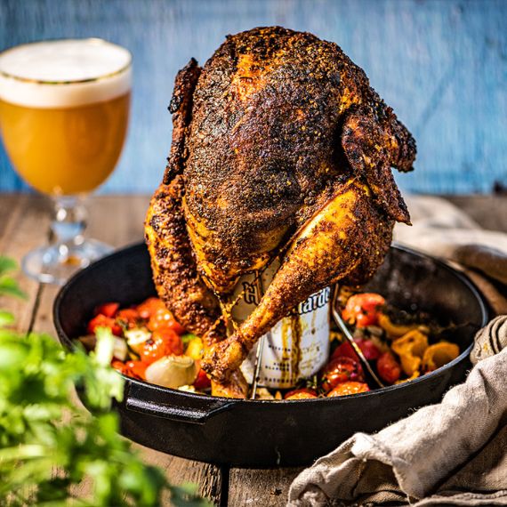 Le "poulet sur canette de bière" est une méthode de cuisson populaire qui consiste à placer un poulet sur une canette de bière ouverte et à moitié pleine. Les canettes de bière n'étant pas particulièrement stables, le poulet peut se renverser au cours de la cuisson.
