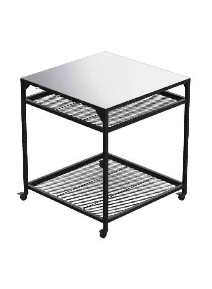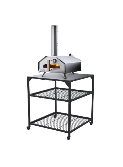 la table modulaire de la marque d'Ooni est fabriquée en acier inoxydable et acier doux avec revêtement en poudre, elle est parfaitement adaptée à tous les fours à pizza Ooni. Cette table est composée de deux étagères réglables en hauteur et des crochets intégrés sur lesquels vous pourrait ranger vos pelles et autres accessoires Ooni , en ce qui concerne l'étagère inférieure, elle va servir de rangement de la bouteille de propane. De plus, les deux roulettes à position sont verrouillable et garantissent une stabilité maximale lors de la cuisson.