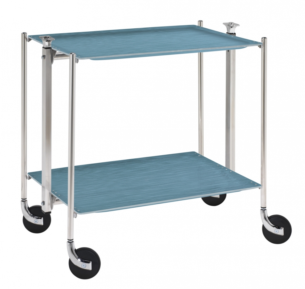Préparez vos réceptions en toute sérénité avec la desserte de cuisine Textable de Platex et ses deux plateaux en acrylique coloris bleu "Mayfair marine".