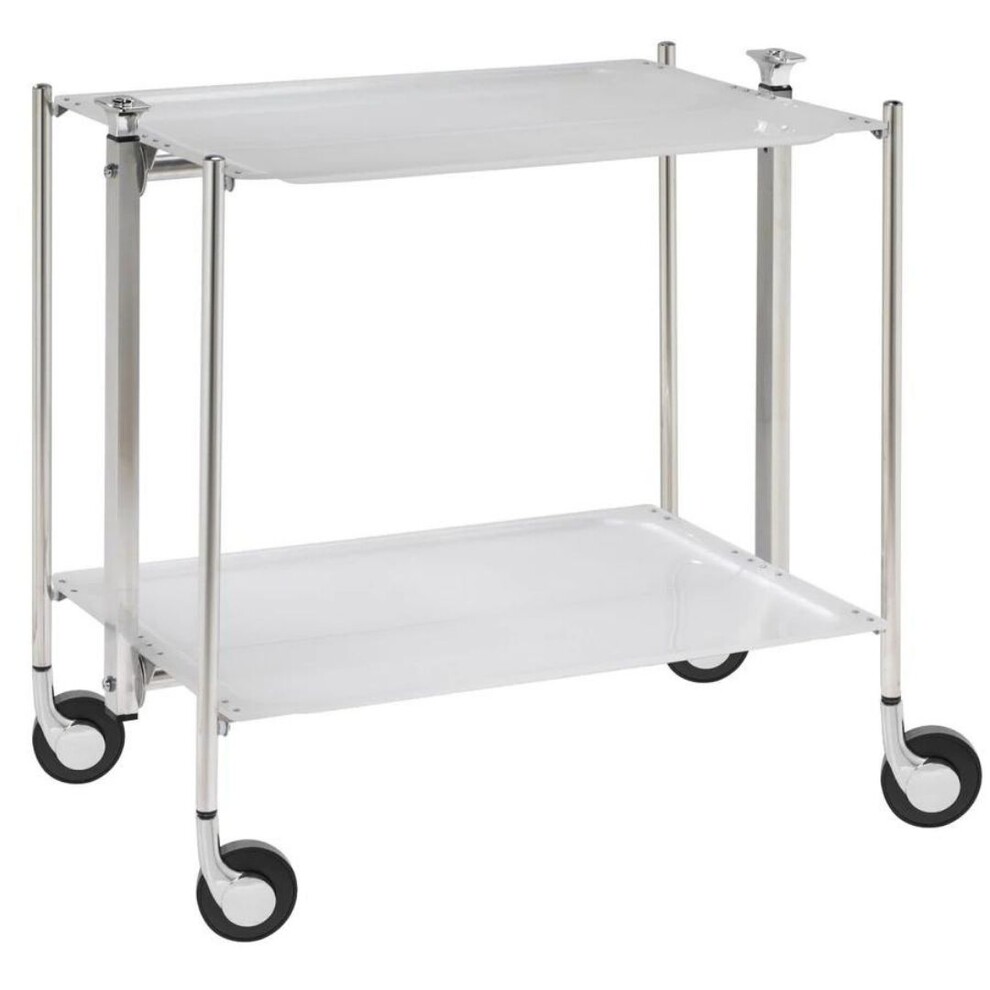 Table roulante pliante, desserte de cuisine 2 étages montants chromés plateaux a