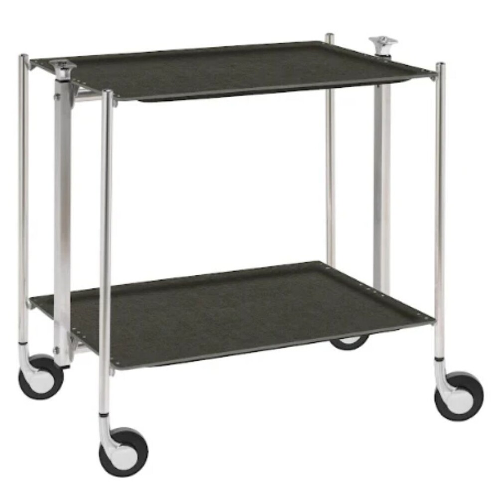 Table roulante pliante, desserte de cuisine 2 étages montants chromés plateaux stratifiés Lin - Gris- Textable