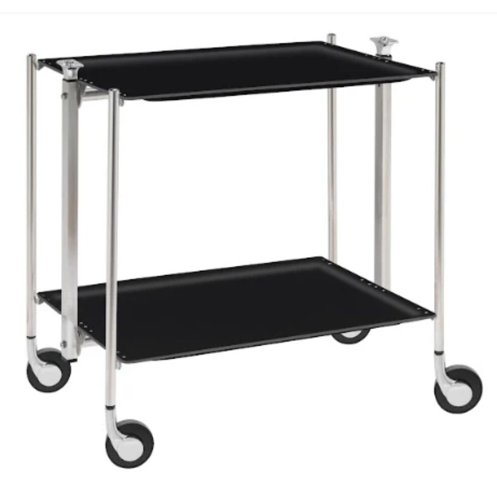 Table roulante pliante, desserte de cuisine 2 étages montants chromés plateaux stratifiés Lin - Noir - Textable