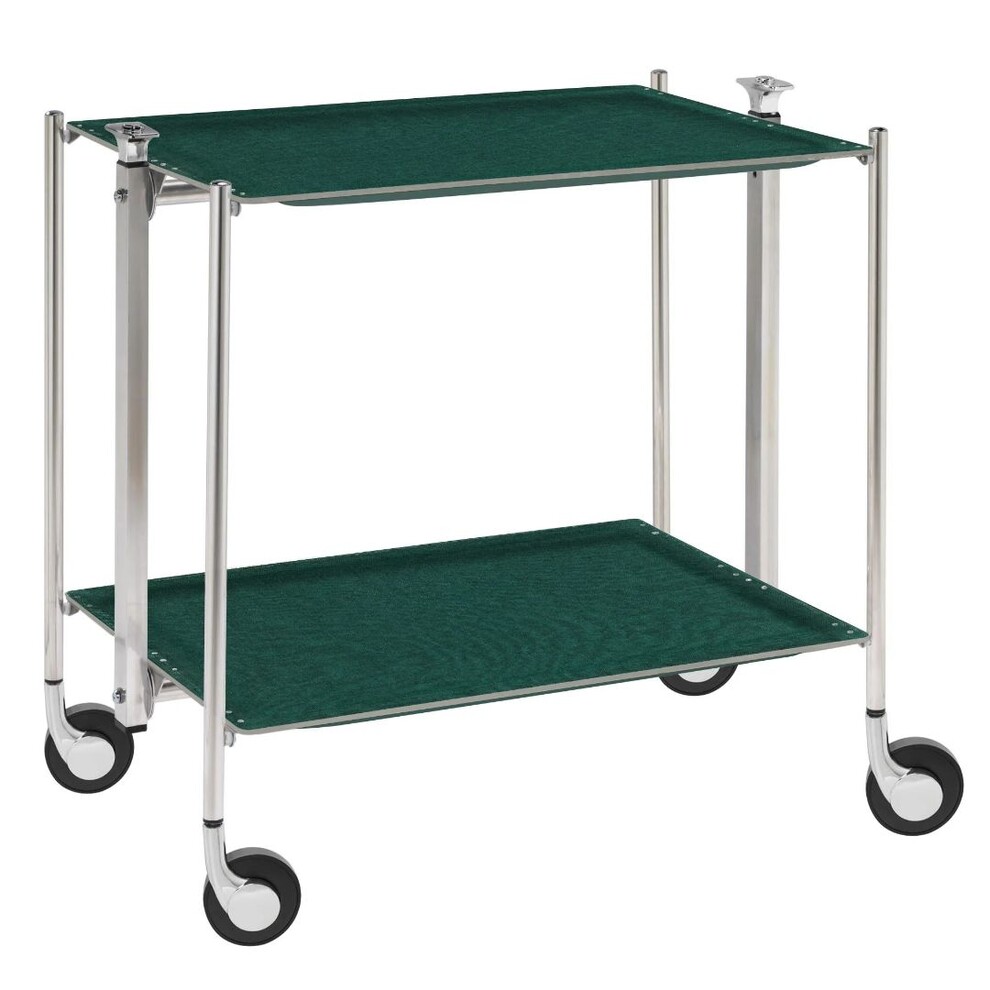 Table roulante pliante, desserte de cuisine 2 étages montants chromés plateaux stratifiés Lin - Vert Emeraude - Textable