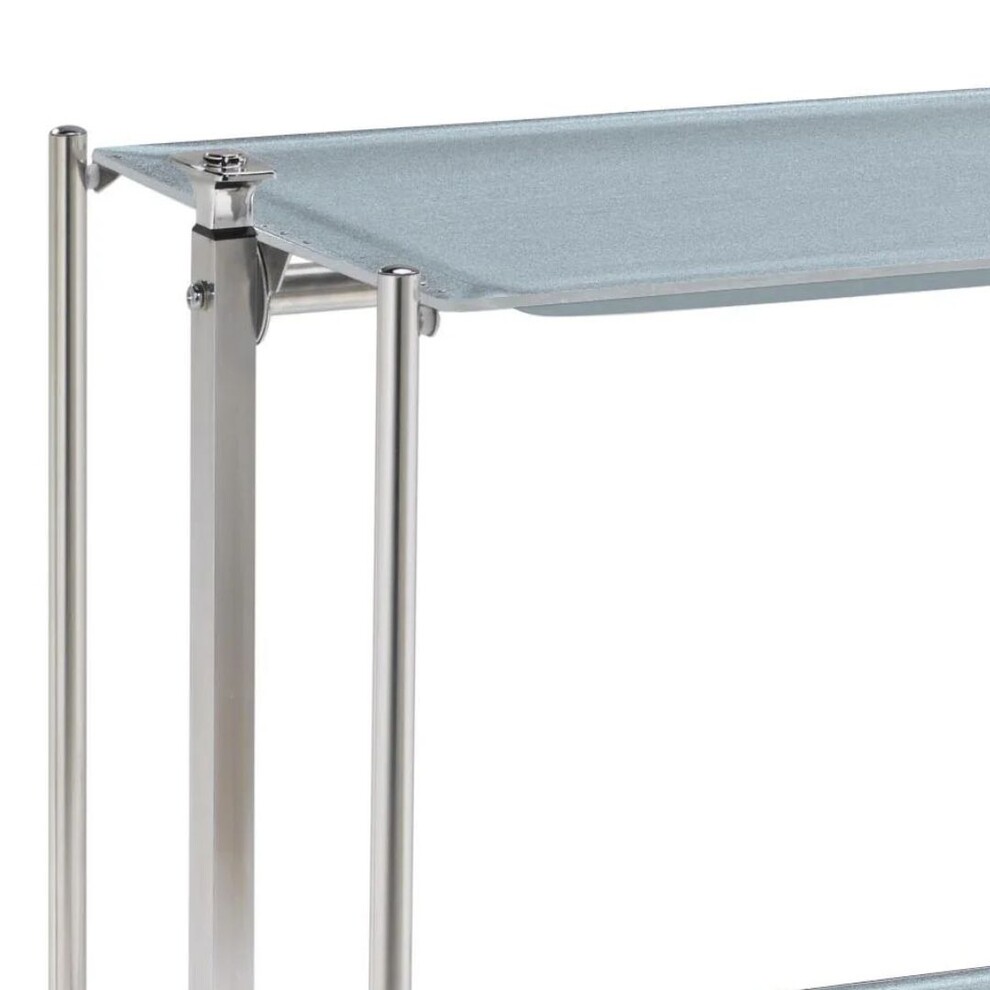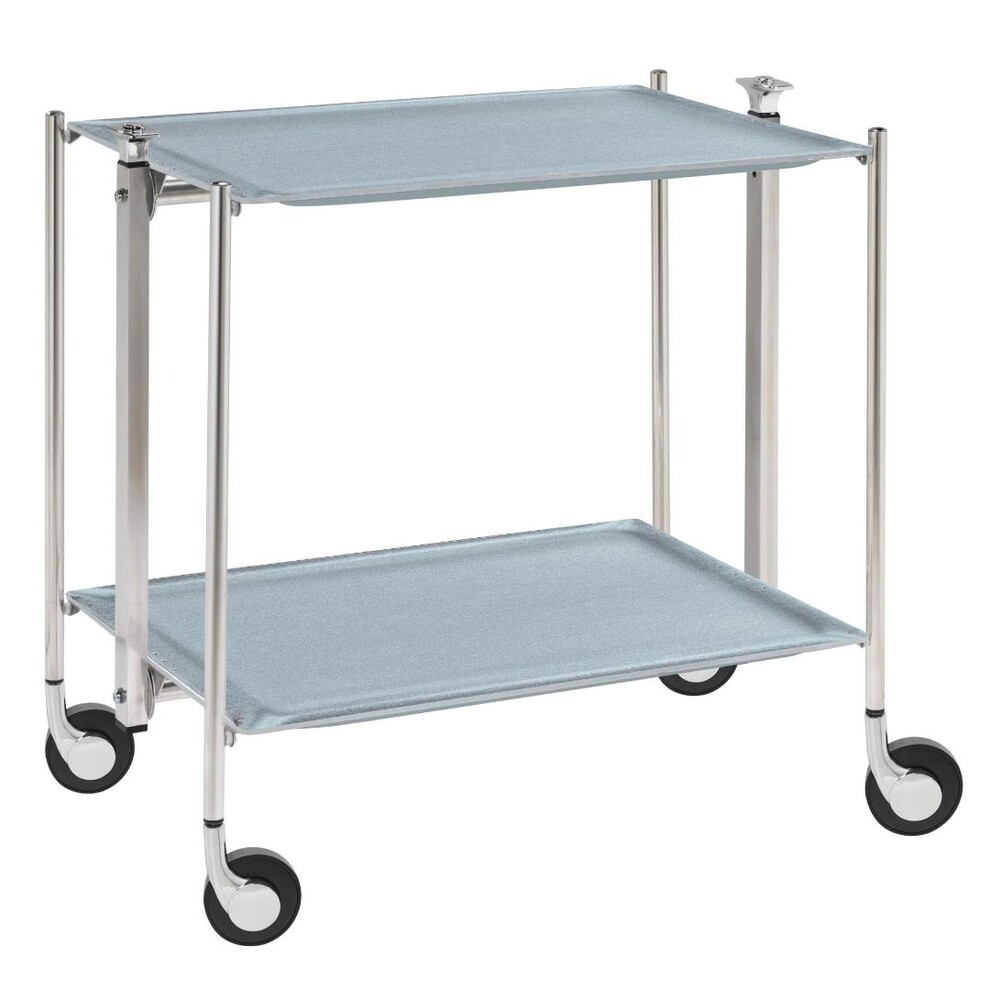 Table roulante pliante, desserte de cuisine 2 étages montants chromés plateaux stratifiés Secret - Bleu Clair - Textable