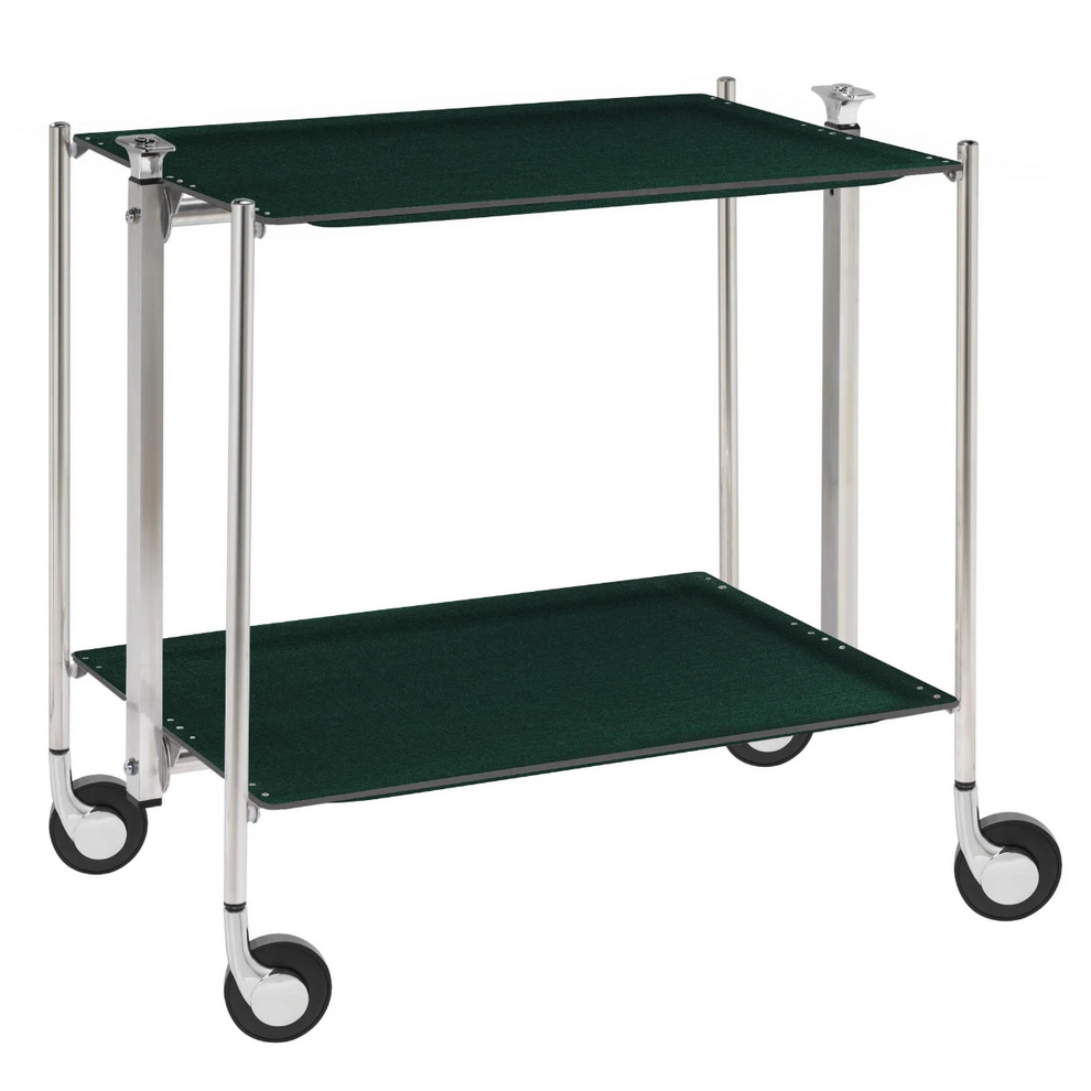 Table roulante pliante, desserte de cuisine 2 étages montants chromés plateaux stratifiés Secret - Emeraude - Textable