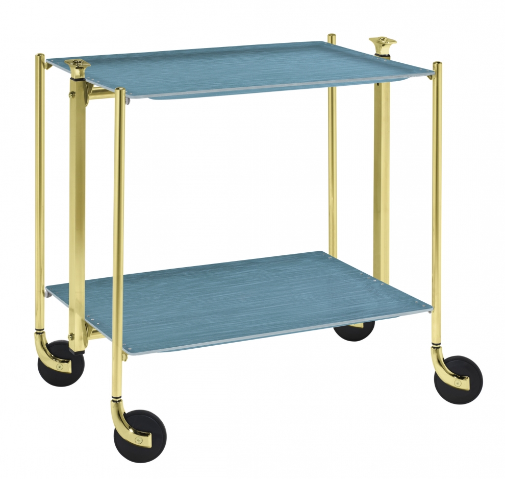 Préparez vos réceptions en toute sérénité avec la table roulante pliante Textable de Platex et ses deux plateaux en acrylique coloris bleu "Mayfair Marine".
