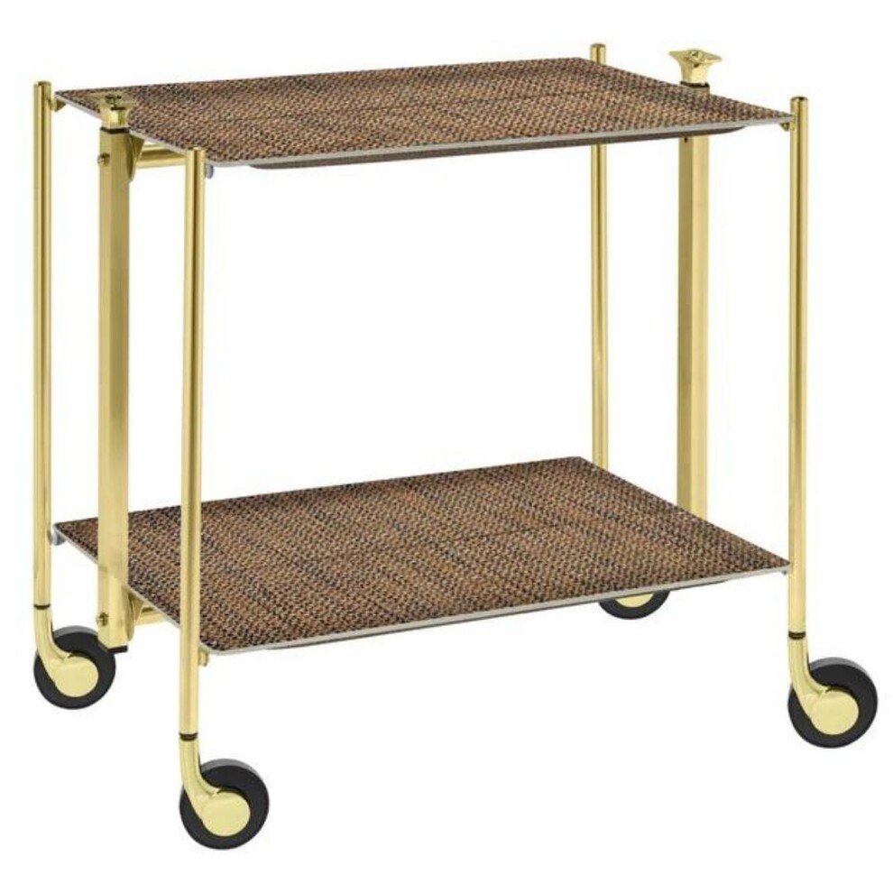 Préparez vos réceptions en toute sérénité avec la desserte de cuisine Textable de Platex et ses deux plateaux en acrylique coloris tweed et doré.