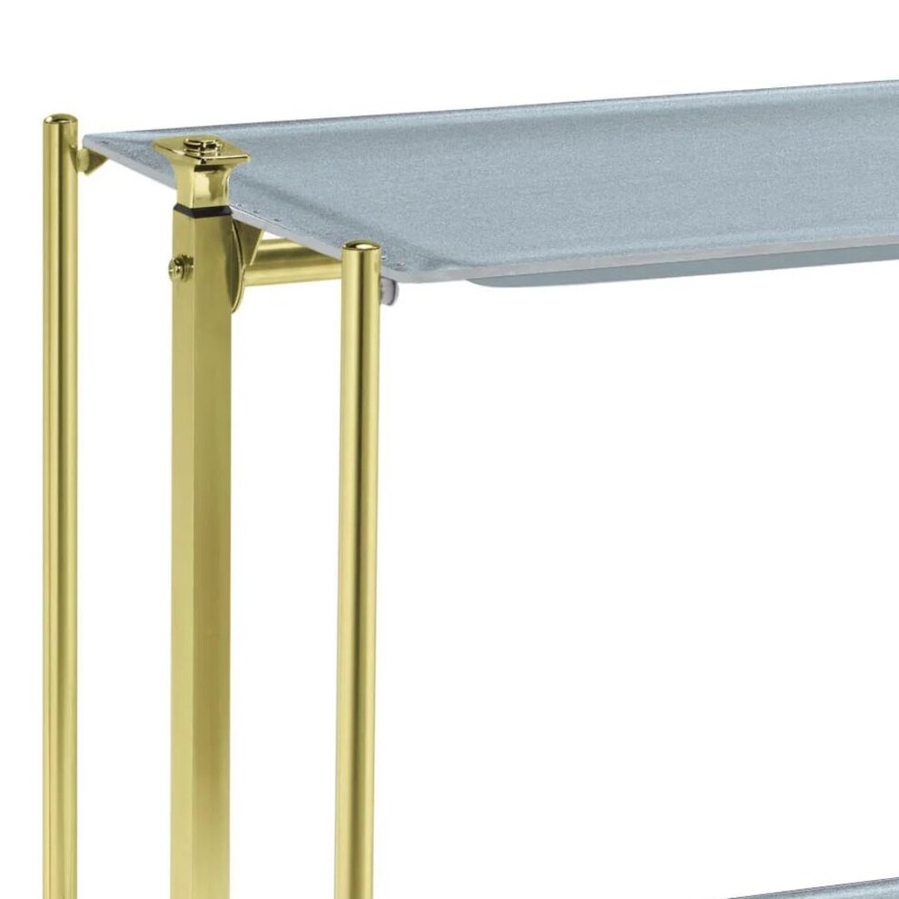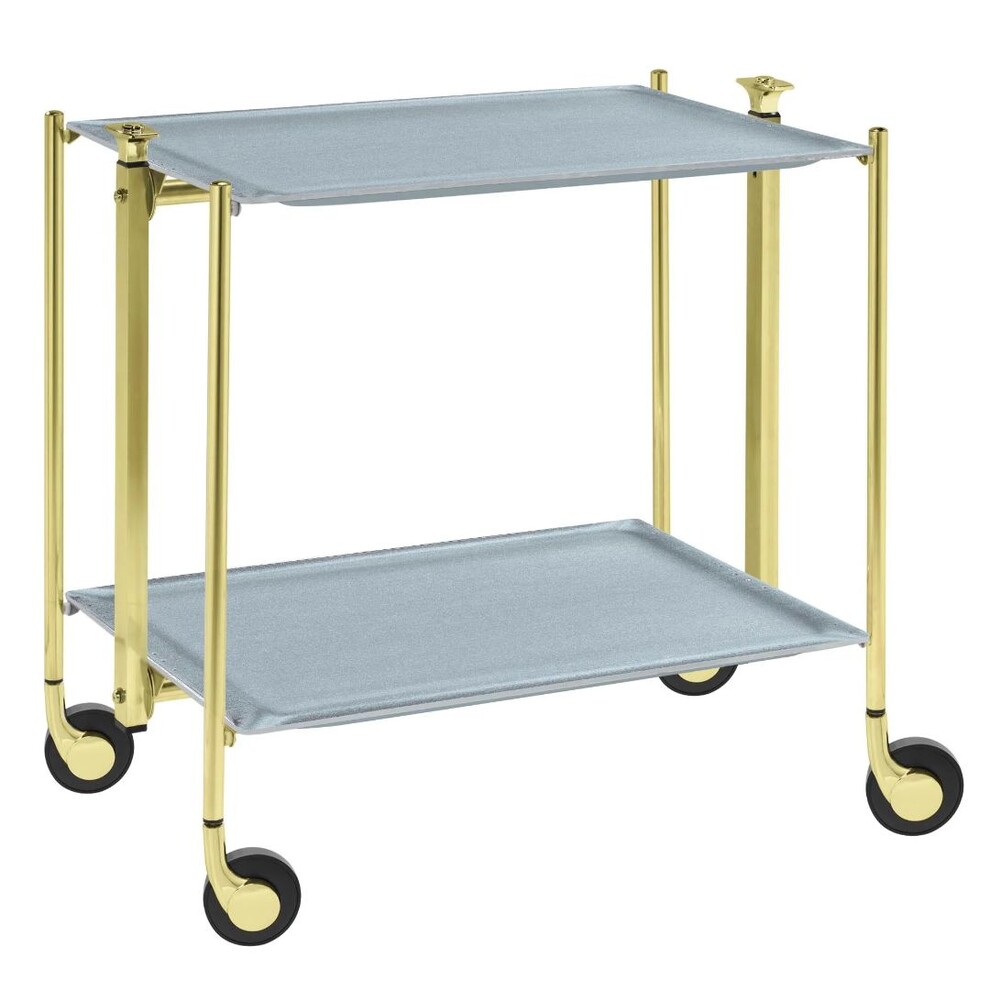 Table roulante pliante, desserte de cuisine 2 étages montants dorés plateaux stratifiés Secret - Bleu Clair - Textable