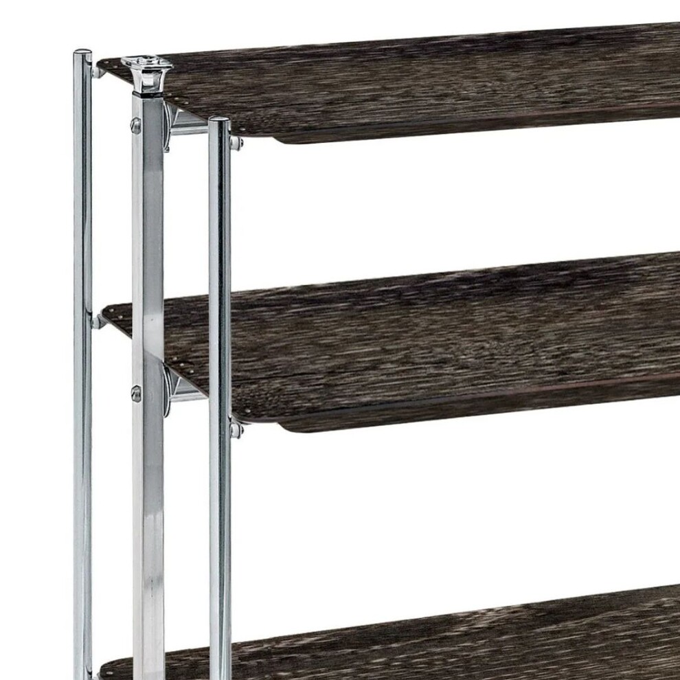 Table roulante pliante, desserte de cuisine 3 étages montants chromés plateaux stratifiés bois Chêne Foncé Textable