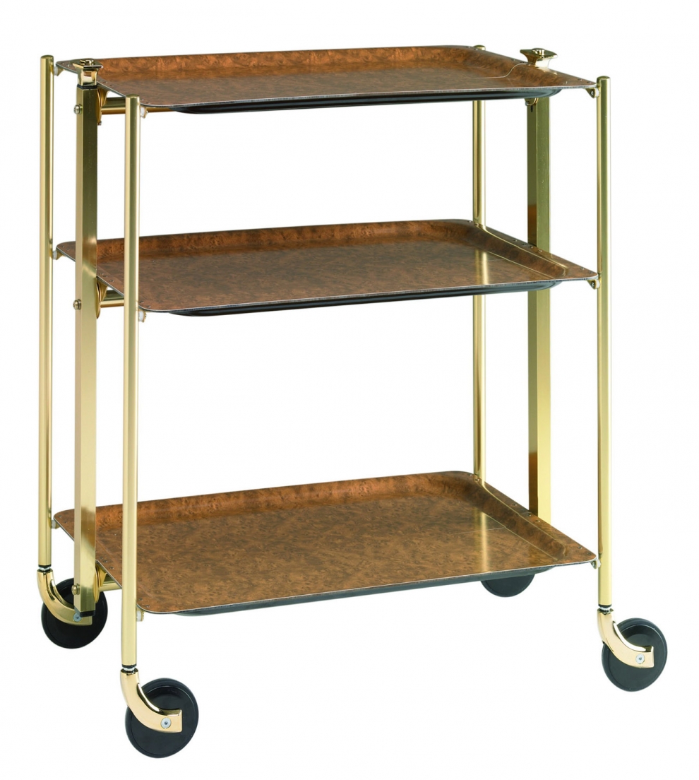 Préparez vos réceptions en toute sérénité avec la table roulante pliante Textable de Platex et ses trois plateaux stratifiés coloris Loupe Foncée.
