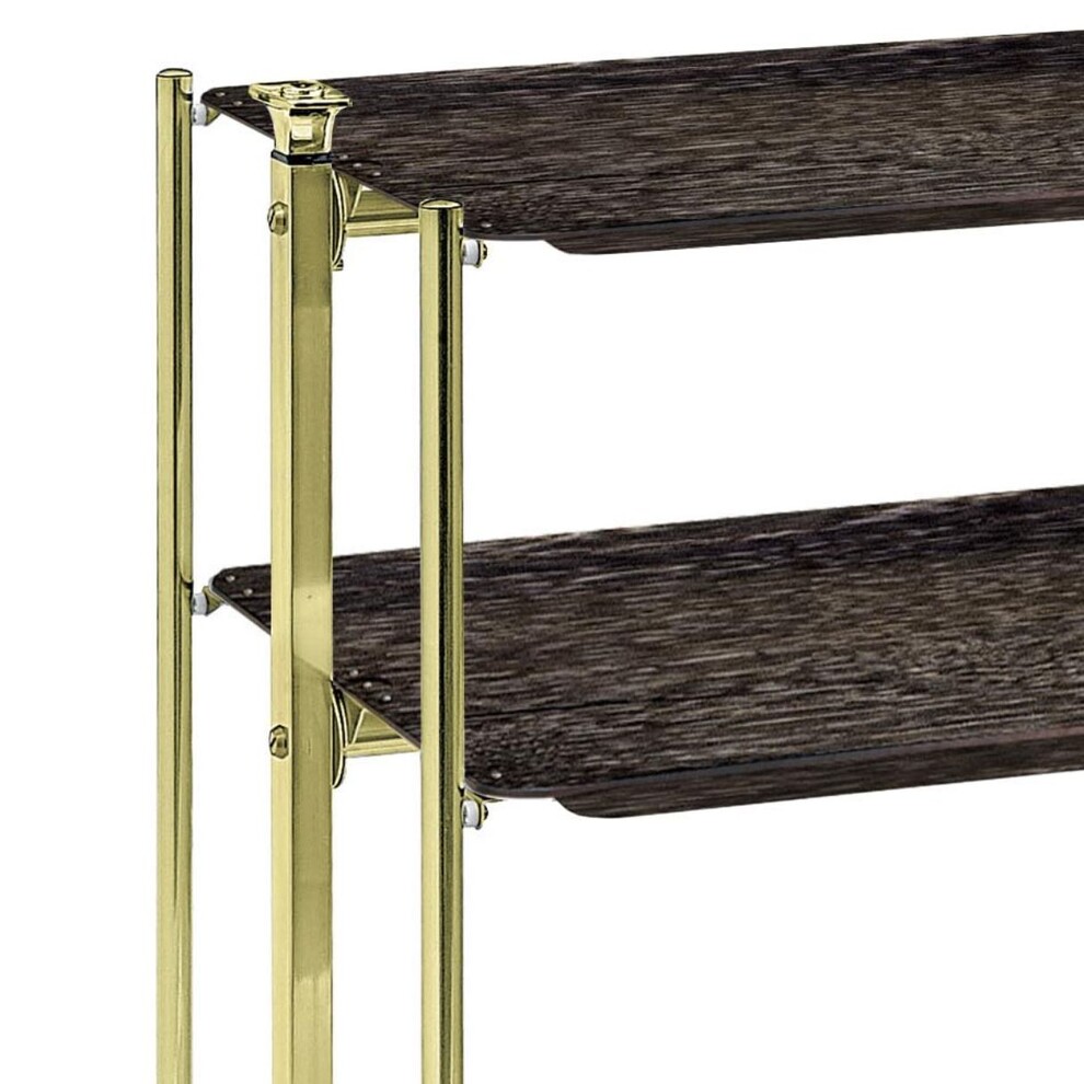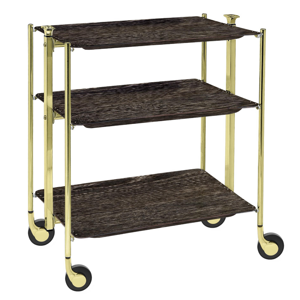 Table roulante pliante, desserte de cuisine 3 étages montants dorés plateaux stratifiés - Dark Oak - Textable