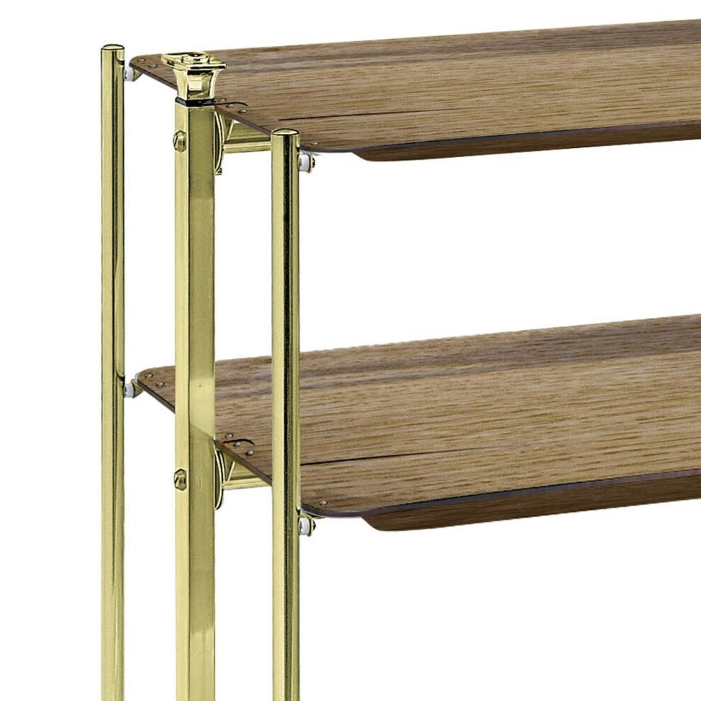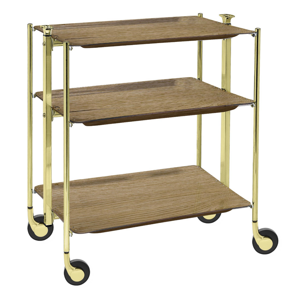 Table roulante pliante, desserte de cuisine 3 étages montants dorés plateaux stratifiés - Light Oak - Textable