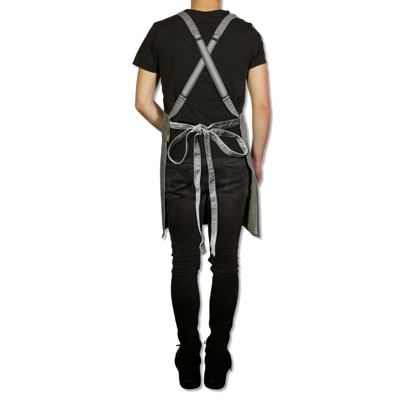 Il s'ajuste parfaitement à votre corpulence grâce aux bretelles croisées, réglables dans le dos. Rangez vos accessoires et vos effets personnels dans la grande poche latérale du tablier.